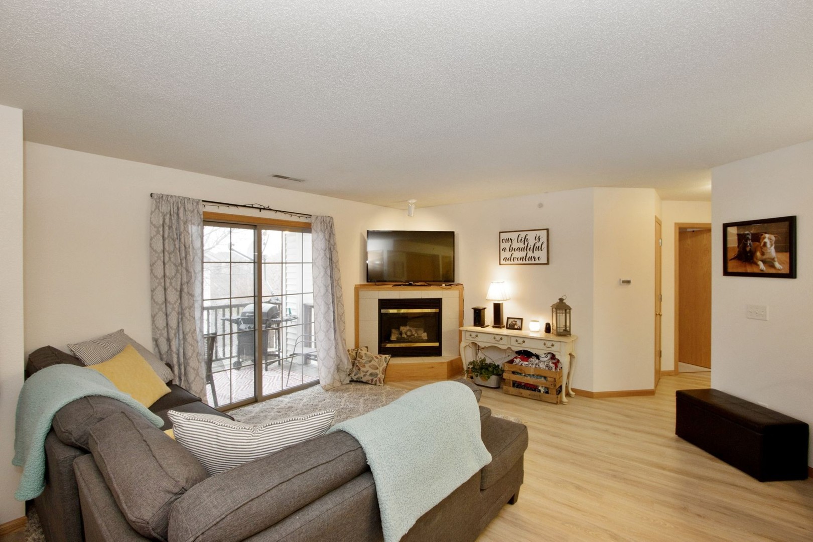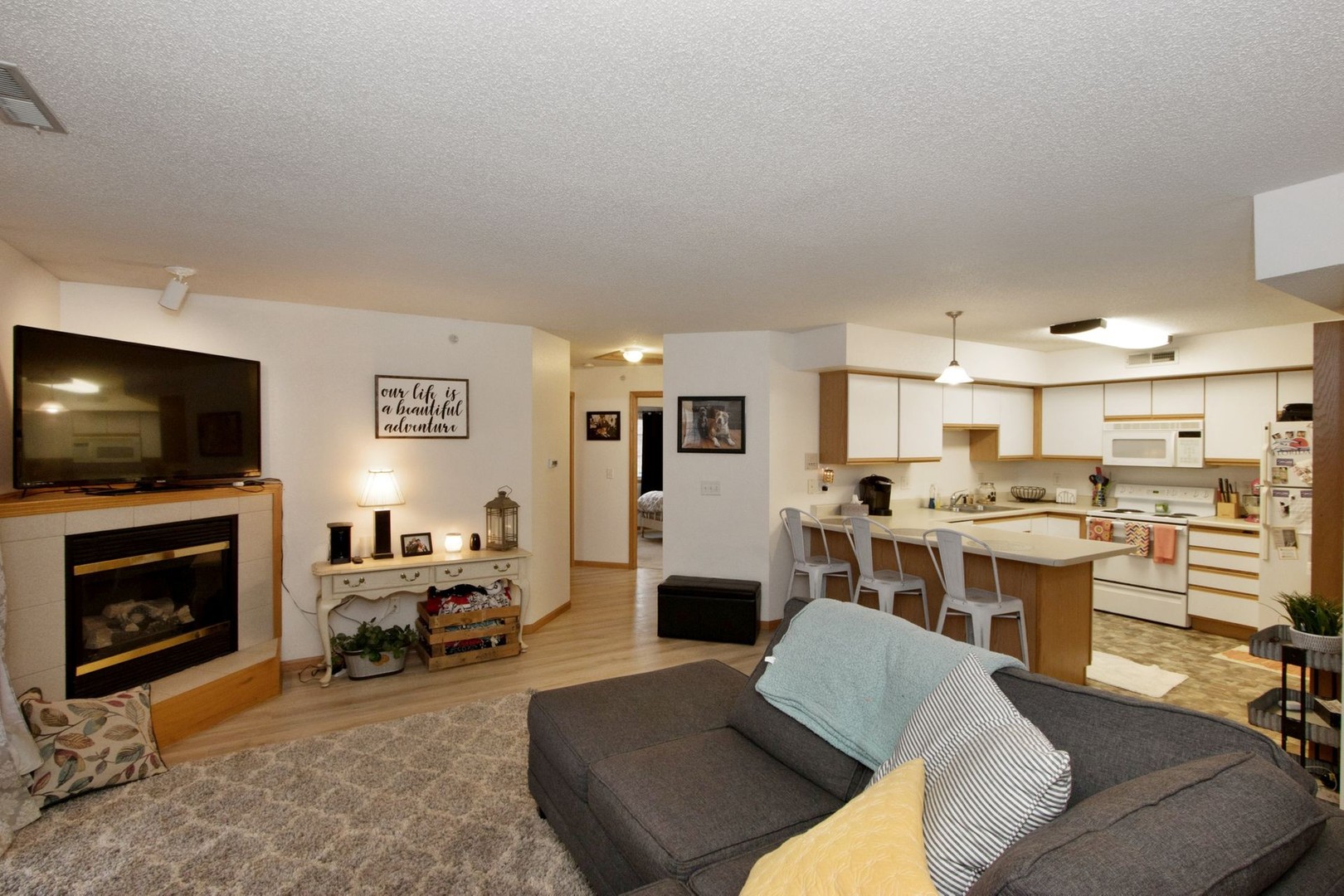 Located just off of Highway 965 in North Coralville, this spacious 2-bedroom apartment home offers a gas fireplace, washer and dryer and secured entry. Enjoy the private deck and park in your own private garage. Stone tile flooring in kitchen and bathroom, new carpet everywhere else.