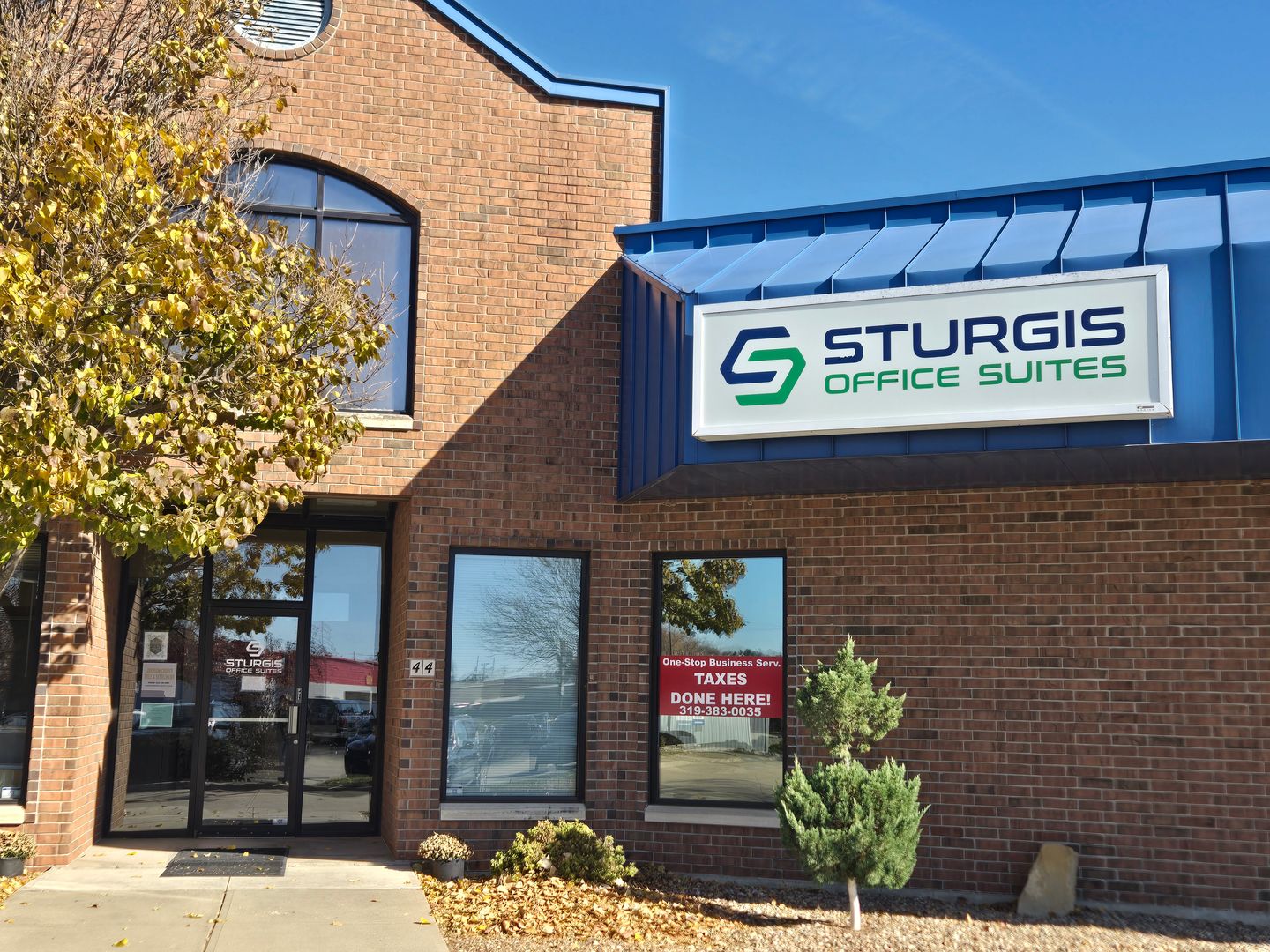 Sturgis Office Suites provides offices of various sizes and flexible lease terms to professionals seeking affordable office space. Tenants have access to shared conference rooms that can seat as many as 15 people, as well as a breakroom/kitchenette. All utilities and secure high speed internet are provided at no additional fee. Located at 44 Sturgis Corner Drive on the corner of Hwy 1 and Hwy 6 in Iowa City, Sturgis Office Suites provides easy access and ample parking.