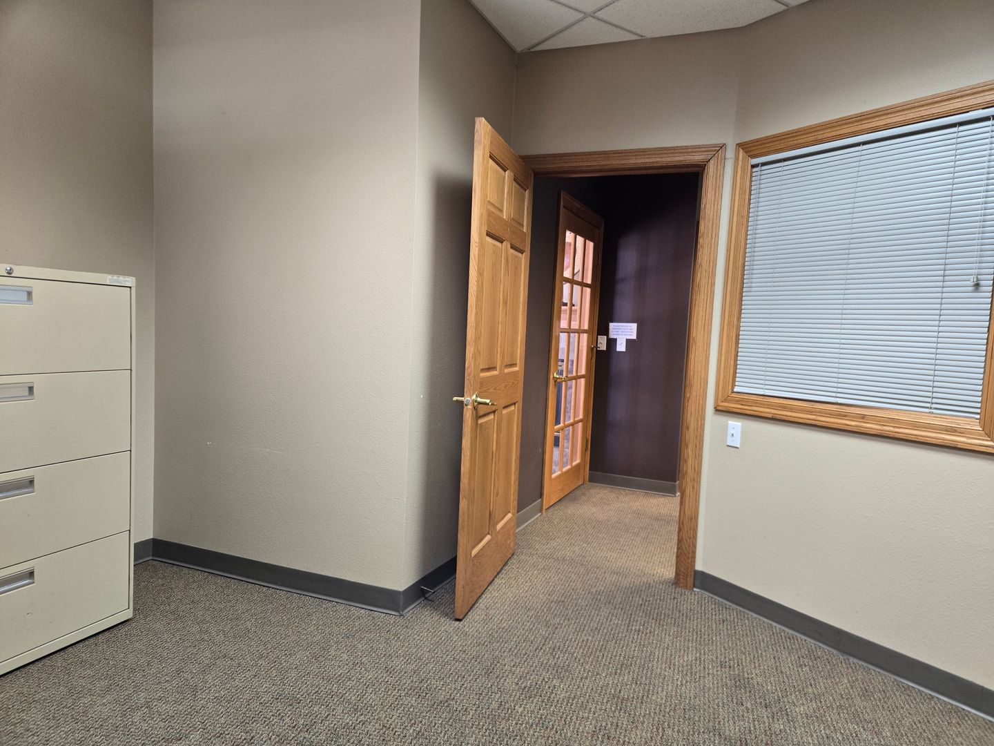 The pictured/available office suite #13 is 96 sqft and has a direct front view of the parking lot and entrance to the building. Available NOW. Must see! Call or email us to set up a showing!